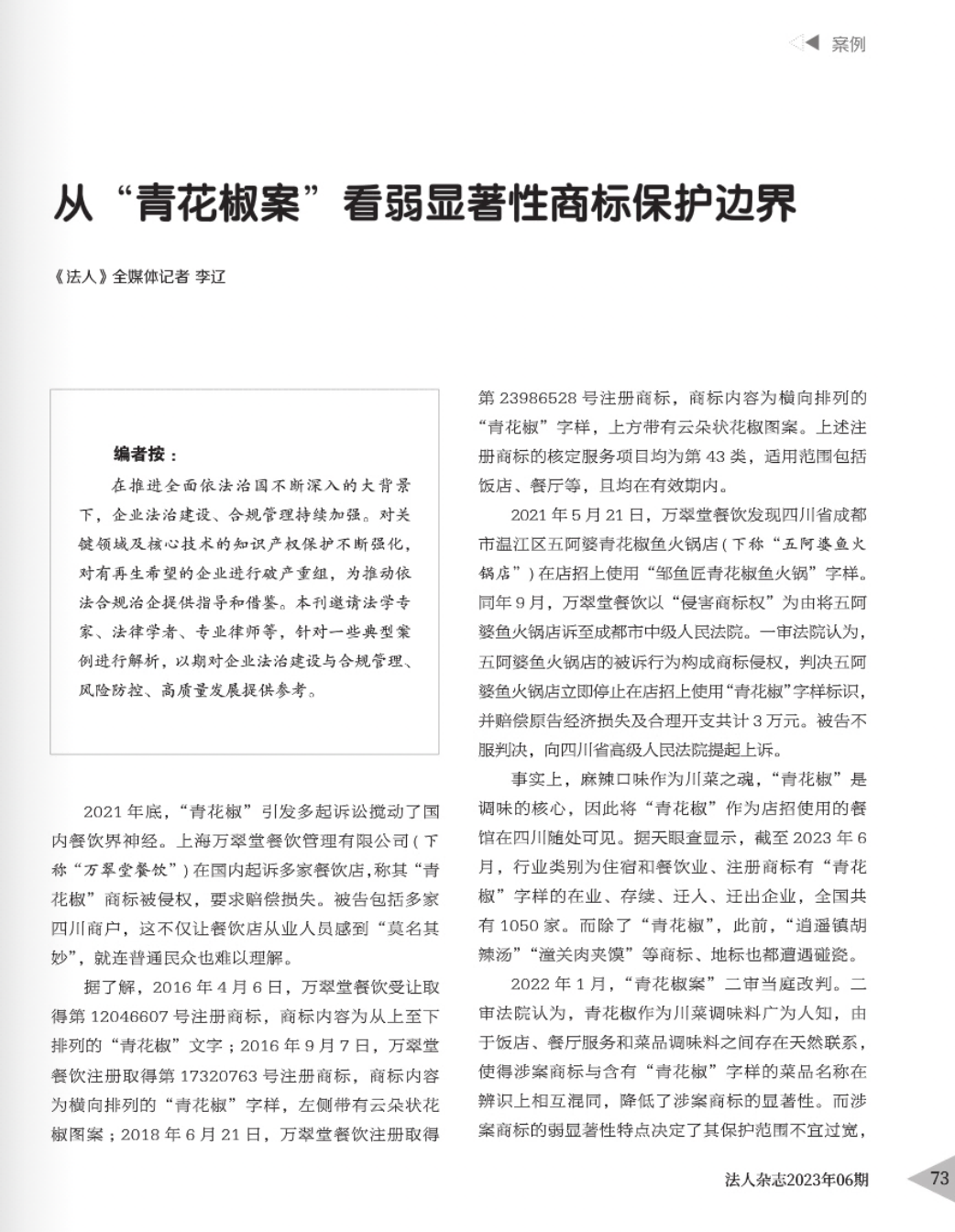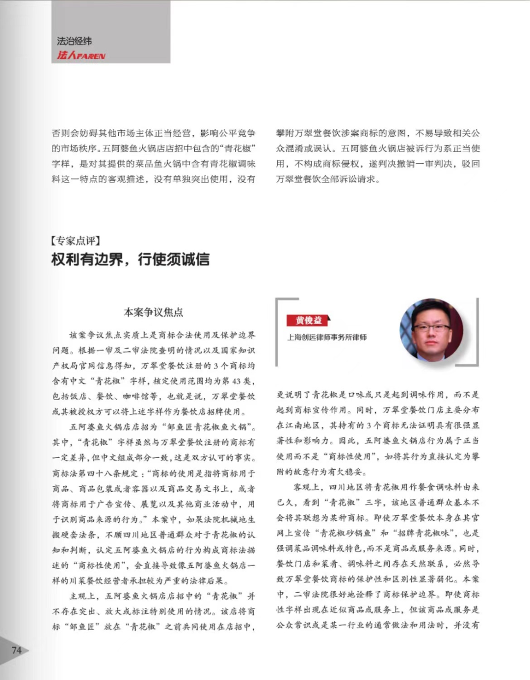 长治辉知简讯 | 辉知队黄俊益律师应“法治日报”旗下杂志邀请,就“青花椒”案发表专家点评